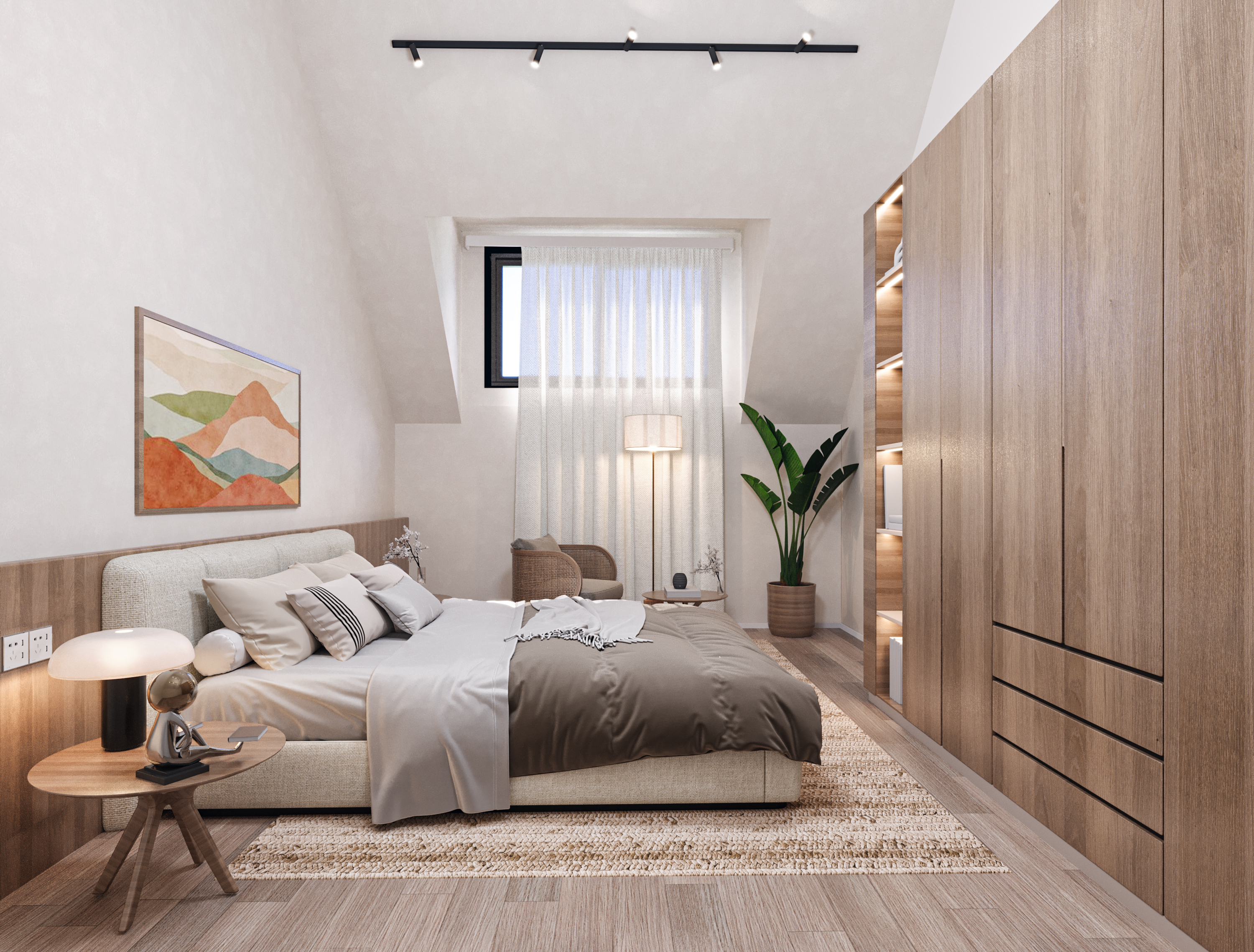 - Floor-to-ceiling windows, double-height living space